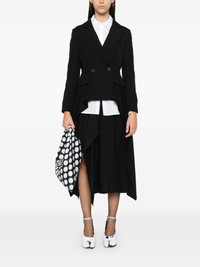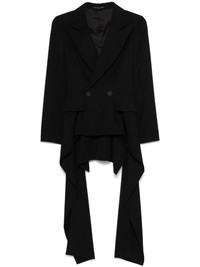draped blazer Highlights - Black - Wool - Twill weave - Draped detailing - Double-breasted button fastening - Peak lapels - Long sleeves - Dart detailing - Two front flap pockets - Full lining - Asymmetric hem Imported Composition Lining: Cupro 100% Outer: Wool 100% SIZE & FIT Model measurements Height 5 ft 10 in(1.78 m) Bust/Chest 33.85 in(86 cm) Hips 36.61 in(93 cm) Waist 26.77 in(68 cm) FittingInformation Designed for a slim fit that sits just away from the body offering a close yet comfortable fit Made from a midweight non-stretch fabric