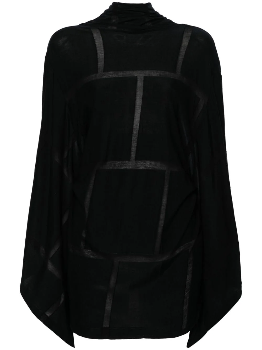 draped cardi-coat Highlights - Black - Cotton blend - Knitted construction - Check pattern - Draped design - Stand-up collar - Long wide sleeves - Front slits - Open front Imported Composition Cotton 59%, Cupro 41% SIZE & FIT Model measurements Height 5 ft 10 in(1.77 m) Bust/Chest 33.07 in(84 cm) Hips 37 in(94 cm) Waist 24.8 in(63 cm) FittingInformation Designed for a relaxed fit, this piece allows for comfort and movement when worn Made from a lightweight non-stretch fabric, this piece offers minimal elasticity when worn This piece fits true to size – take your usual size