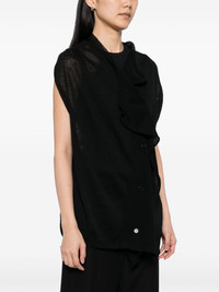 draped cardigan Highlights - Black - Asymmetric front button fastening - Sleeveless - Ribbed hem Imported Composition Linen/Flax 89%, Nylon 11% Washing instructions Dry Clean Only