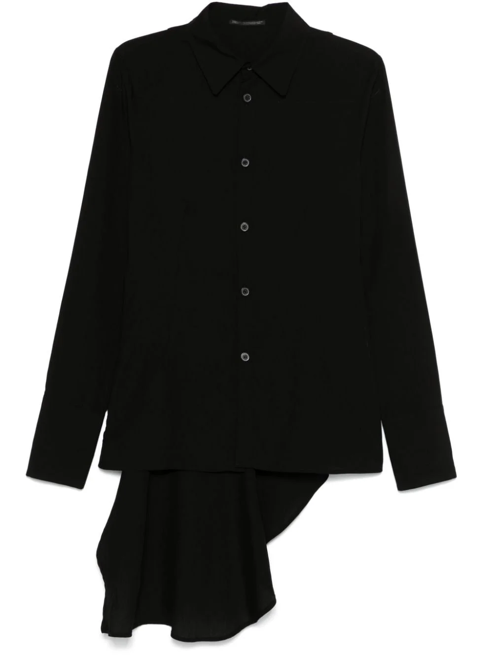 draped shirt Highlights - Black - Cady texture - Draped detailing - Front button fastening - Classic collar - Long sleeves - Buttoned cuffs - Dart detailing - Rear cut-out detailing - Rear small cape insert - High-low hem Imported Composition Cellulose 100% SIZE & FIT Model measurements Height 5 ft 10 in(1.78 m) Bust/Chest 33.85 in(86 cm) Hips 36.61 in(93 cm) Waist 26.77 in(68 cm) FittingInformation Designed for a slim fit that sits just away from the body offering a close yet comfortable fit Made from a midweight non-stretch fabric