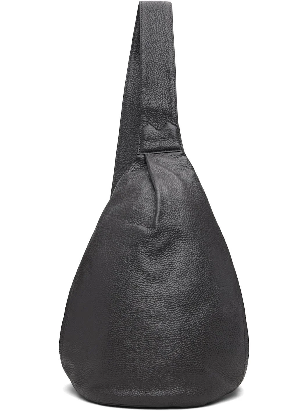 Grained leather shoulder bag. · Convertible and adjustable crossbody strap · Converts from left or right shoulder · Pleat and embossed logo at face · Zip closure at back face · Zip pocket at interior · Twill lining · H15" x W12" x D5" Part of the discord YOHJI YAMAMOTO collection. Supplier color: Dark Grey Leather. Made in Japan 252573F048001