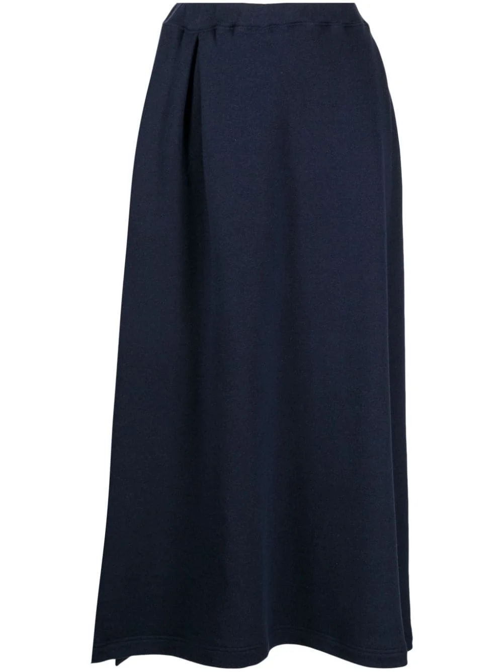 high-waist pleated midi skirt Highlights - Navy blue - Cotton blend - Pleat detailing - Elasticated waistband - High-waisted - Flared - Straight hem Imported Composition Outer: Cotton 85%, Cellulose Acetate 15% Trims: Cotton 55%, Cellulose Acetate 42%, Polyurethane 3% SIZE & FIT Model measurements Height 5 ft 10 in(1.77 m) Bust/Chest 31.49 in(80 cm) Hips 35.43 in(90 cm) Waist 25.19 in(64 cm) FittingInformation This maxi-length skirt is intended to be worn just below the waist The elasticated waist allows for a comfortable fit Made from a midweight non-stretch fabric, this piece offers minimal elasticity when worn This piece fits true to size – take your usual size Washing instructions Dry Clean Only