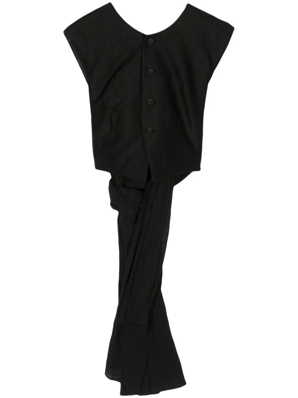 knot-detailing vest Highlights - Black - Ramie blend - Panelled design - Knot detailing - Crew neck - Front button fastening - V-back - Sleeveless - Straight hem Imported Composition Back: Cotton 90%, Linen/Flax 10% Front: Ramie 53%, Cupro 34%, Linen/Flax 13%