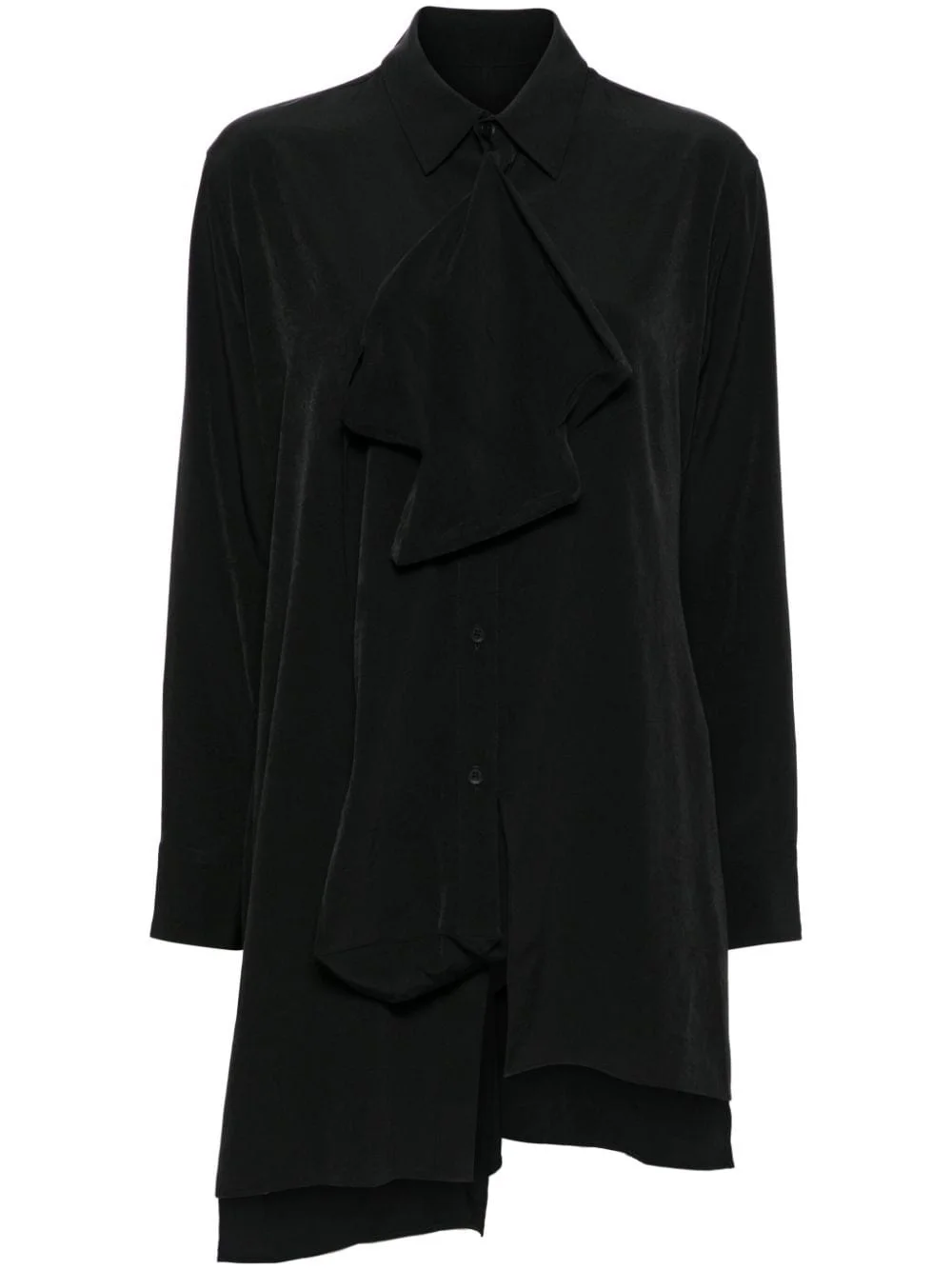 asymmetric shirt Highlights - Black - Front button fastening - Classic collar - Panelled design - Asymmetric hem - Short side slits - Central rear vent - Buttoned cuffs - Long sleeves Imported Composition Triacetate 57%, Polyester 43% SIZE & FIT Model measurements Height 5 ft 10 in(1.77 m) Bust/Chest 31.49 in(80 cm) Hips 35.43 in(90 cm) Waist 25.19 in(64 cm) FittingInformation Designed to be unstructured, offering a loose fit throughout Made from a midweight non-stretch fabric