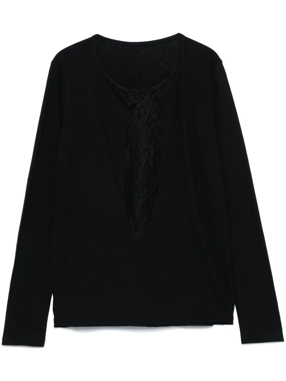 lace-detail T-shirt Highlights - Black - Crew neck - Long sleeves - Straight hem Imported Composition Cotton 100%, Nylon 68%, Rayon 32% SIZE & FIT Model measurements Height 5 ft 10 in(1.77 m) Bust/Chest 31.1 in(79 cm) Hips 34.64 in(88 cm) Waist 24.01 in(61 cm) FittingInformation Designed for a relaxed fit, this piece allows for comfort and movement when worn Made from a midweight non-stretch fabric, this piece offers minimal elasticity when worn