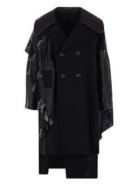 leather-panel coat Highlights - Black - Leather panels - Frayed detail - Double-breasted - Button fastening - Wide collar Imported Composition Outer: Wool 100%, Horse Leather 100% Lining: Cellulose 55%, Ramie 46% Washing instructions Read Manufacturer Guidelines