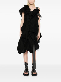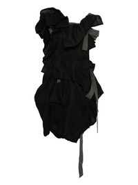 linen draped dress Highlights - Black - Open front - Draped design Imported Composition Linen/Flax 100% SIZE & FIT Model measurements Height 5 ft 9 in(1.76 m) Bust/Chest 31.1 in(79 cm) Hips 35.03 in(89 cm) Waist 24.4 in(62 cm) FittingInformation Designed for a slim fit that sits just away from the body offering a close yet comfortable fit The belt offers adjustability for fitted preferences Made from a midweight non-stretch fabric Washing instructions Dry Clean Only