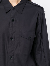 long-sleeve cotton shirt navy blue cotton chest flap pocket classic collar front button fastening long sleeves buttoned cuffs curved hem Imported Composition Body: Cotton 100% SIZE & FIT Model measurements Height 5 ft 10 in(1.78 m) Bust/Chest 33.07 in(84 cm) Hips 33.85 in(86 cm) Waist 25.19 in(64 cm) Washing instructions Hand Wash