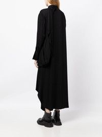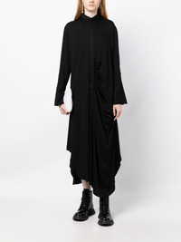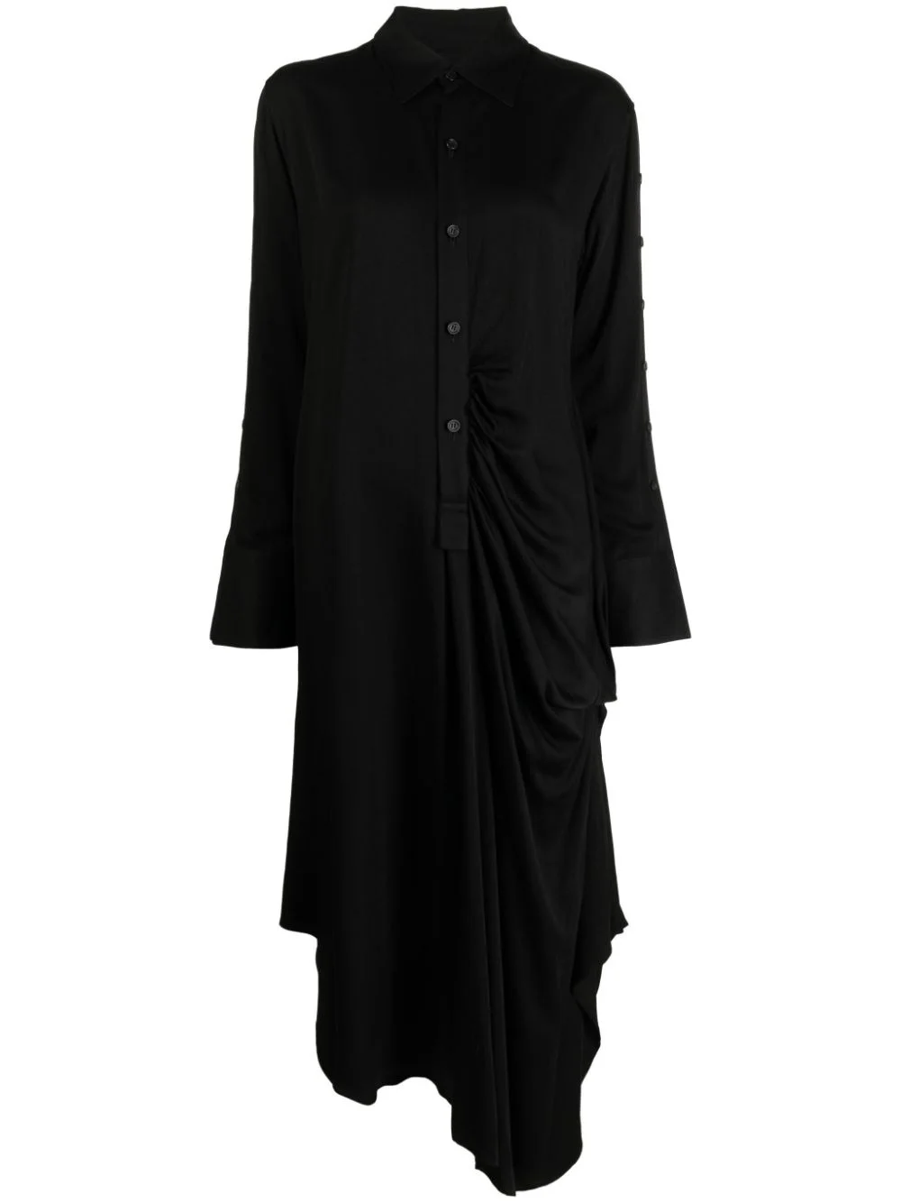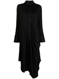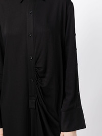 long-sleeve draped midi shirt dress Highlights - Black - Draped detailing - Classic collar - Front button fastening - Long sleeves - Mid-length - Asymmetric hem Imported Composition Viscose 100% SIZE & FIT Model measurements Height 5 ft 10 in(1.78 m) Bust/Chest 29.13 in(74 cm) Hips 35.43 in(90 cm) Waist 23.62 in(60 cm) FittingInformation Designed to be unstructured, offering a loose fit throughout Made from a midweight non-stretch fabric, this piece offers minimal elasticity when worn This piece fits true to size – take your usual size