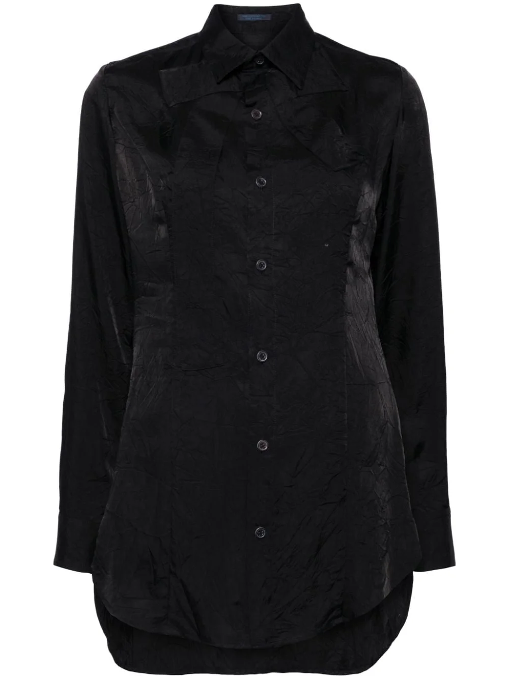 panelled crease shirt Highlights - Black - Crease effect - Panelled design - Classic collar - Front button fastening - Long sleeves - Curved hem Imported Composition Cupro 100% SIZE & FIT Model measurements Height 5 ft 9 in(1.76 m) Bust/Chest 31.1 in(79 cm) Hips 35.03 in(89 cm) Waist 24.4 in(62 cm) FittingInformation Designed to be unstructured, offering a loose fit throughout Made from a lightweight non-stretch fabric This piece fits true to size – take your usual size