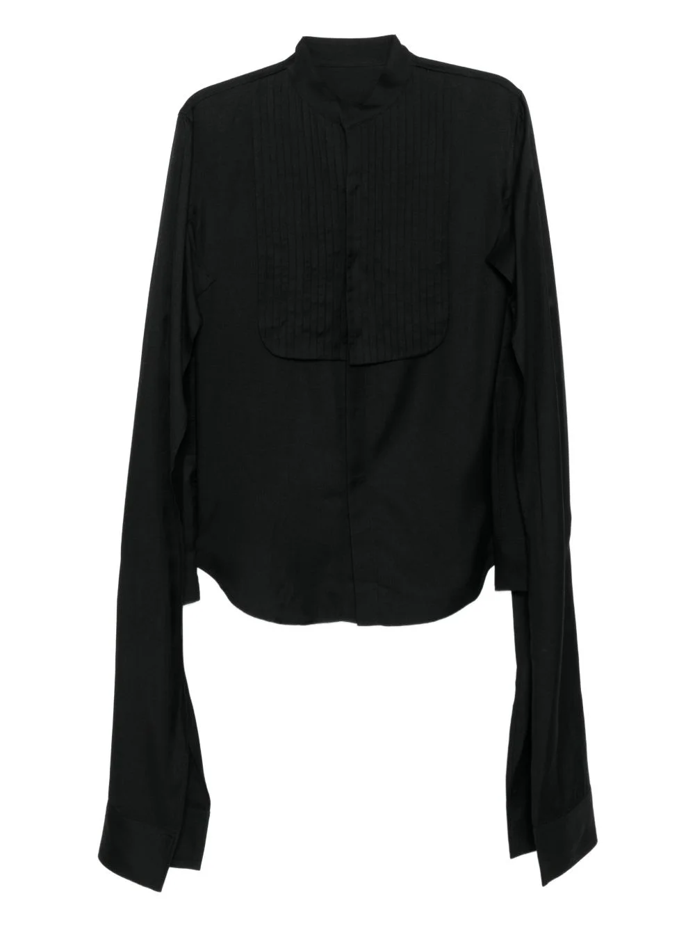 pintuck shirt Highlights - Black - Concealed front button fastening - Cape design - Curved hem Imported Composition Rayon 100% SIZE & FIT Model measurements Height 5 ft 10 in(1.77 m) Bust/Chest 30.31 in(77 cm) Hips 36.22 in(92 cm) Waist 24.8 in(63 cm) FittingInformation Designed to be unstructured, offering a loose fit throughout Made from a midweight non-stretch fabric Washing instructions Dry Clean Only