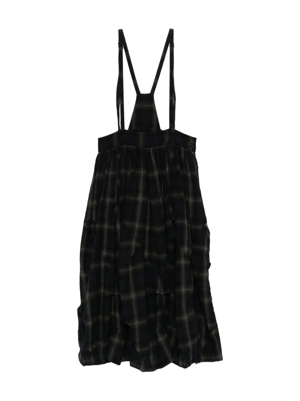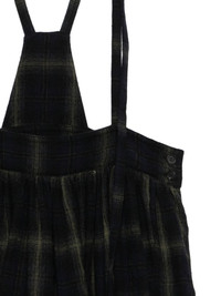 plaid button skirt Highlights - Navy blue - Plaid pattern - Button detail - Suspender straps - Gathered detail Imported Composition Wool 67%, Cotton 33% Washing instructions Dry Clean Only