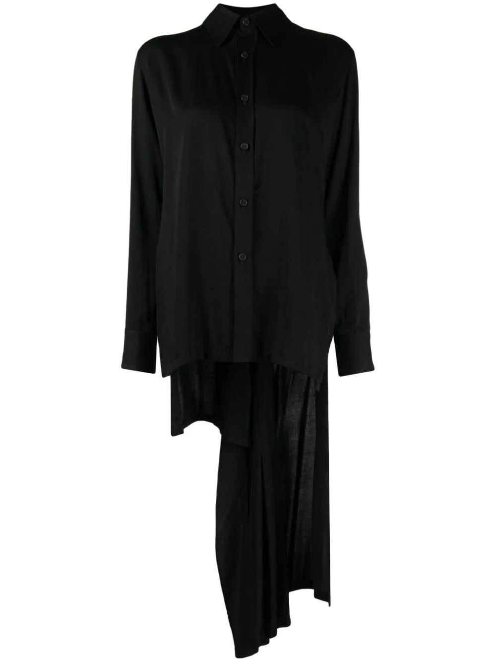 pleated high-low hem shirt Highlights - Black - Pleat detailing - Classic collar - Front button fastening - Asymmetric sleeves - Buttoned cuffs - High-low hem Imported Composition Rayon 100% SIZE & FIT Model measurements Height 5 ft 10 in(1.77 m) Bust/Chest 28.74 in(73 cm) Hips 35.82 in(91 cm) Waist 24.4 in(62 cm) FittingInformation Designed to be unstructured, offering a loose fit throughout Made from a midweight non-stretch fabric This piece fits true to size – take your usual size Washing instructions Dry Clean Only