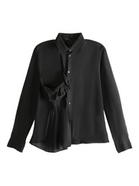 pleated ruffle shirt Highlights - Black - Pleated detail - Ruffle embellishment - Front button fastening - Long sleeves - Collared neck Made in France Composition Cellulose 100% Washing instructions Read Manufacturer Guidelines