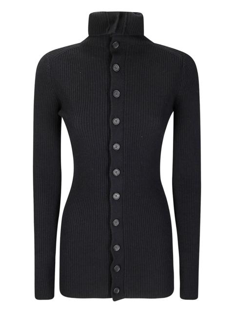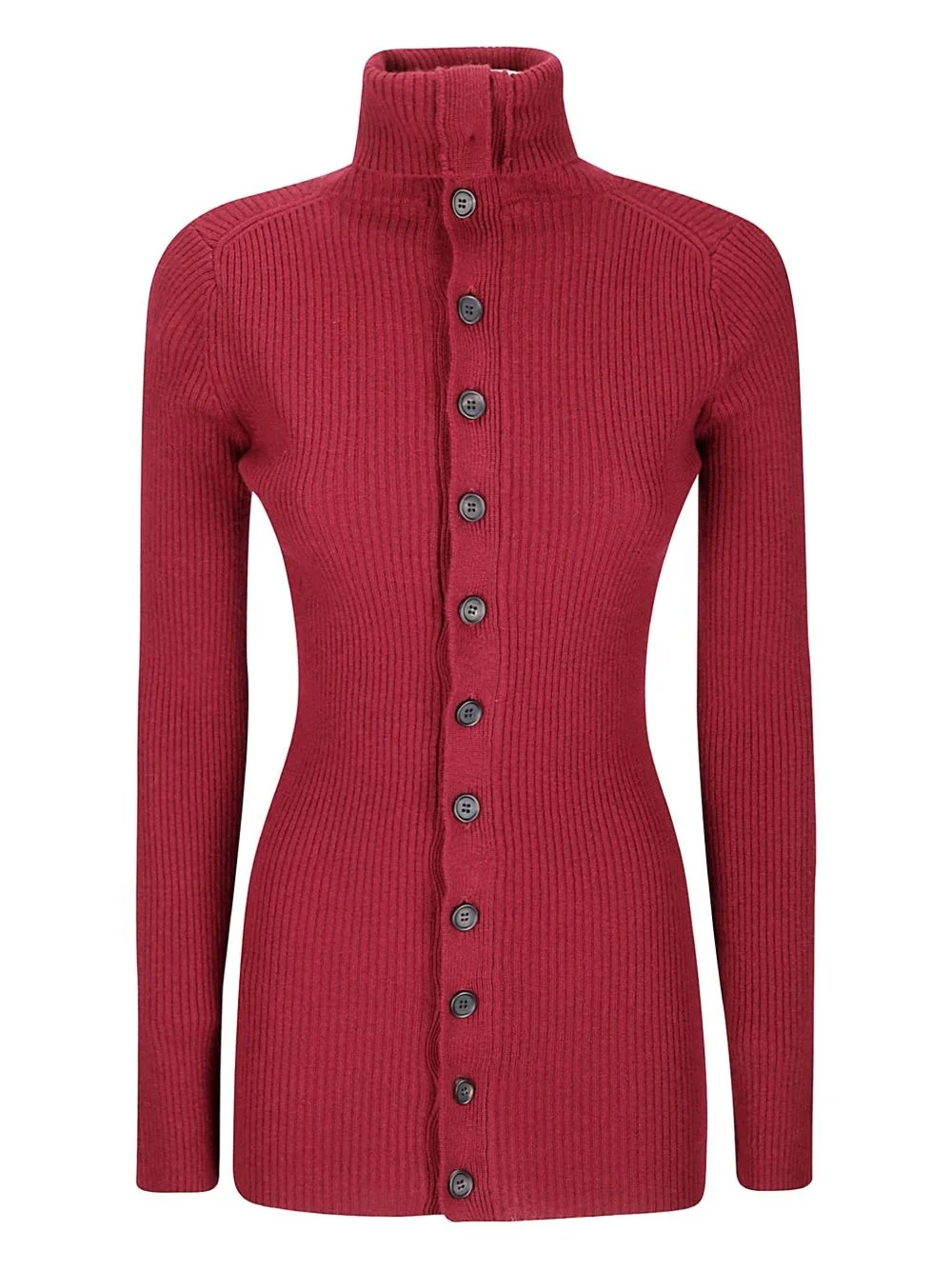 ribbed high-neck sweater Highlights - Red - Ribbed texture - High neck - Button fastening - Long sleeves Imported Composition Wool 90%, Cashmere 10% Washing instructions Read Manufacturer Guidelines