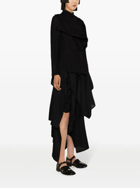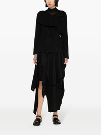 ruffle-detail asymmetric coat Highlights - Black - Wool - Asymmetric design - Layered design - Ruffled detailing - Spread collar - Concealed front fastening - Long sleeves - Long length - Asymmetric hem Imported Composition Wool 100% SIZE & FIT Model measurements Height 5 ft 10 in(1.78 m) Bust/Chest 29.92 in(76 cm) Hips 34.64 in(88 cm) Waist 23.62 in(60 cm) FittingInformation Designed for a close fit at the chest and waist with a loose fit at the hip Made from a midweight non-stretch fabric This piece fits true to size – take your usual size Washing instructions Dry Clean Only