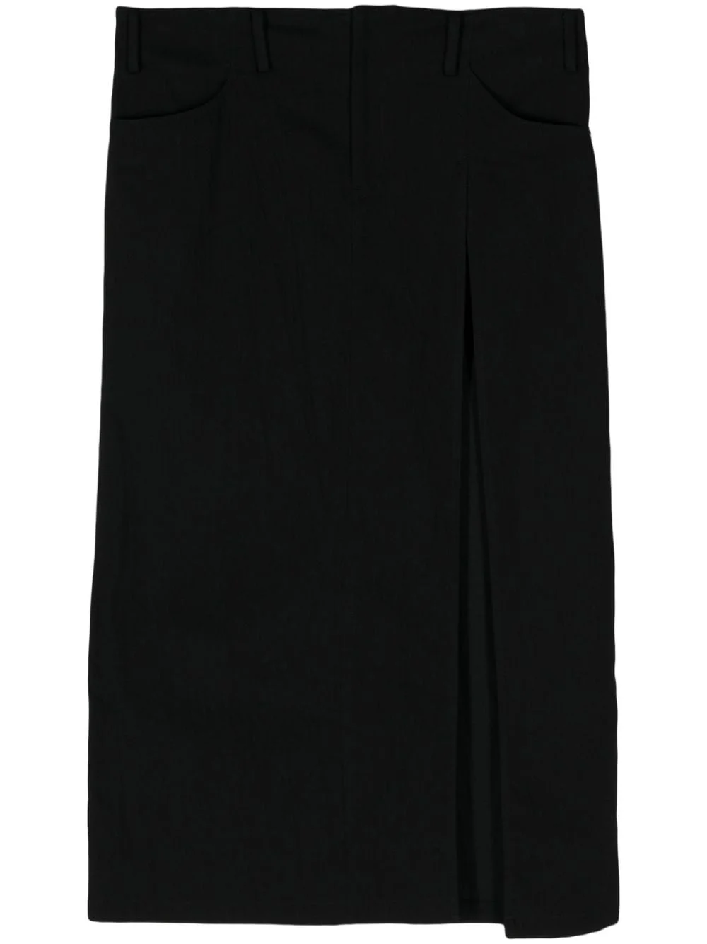 side-slit denim maxi skirt