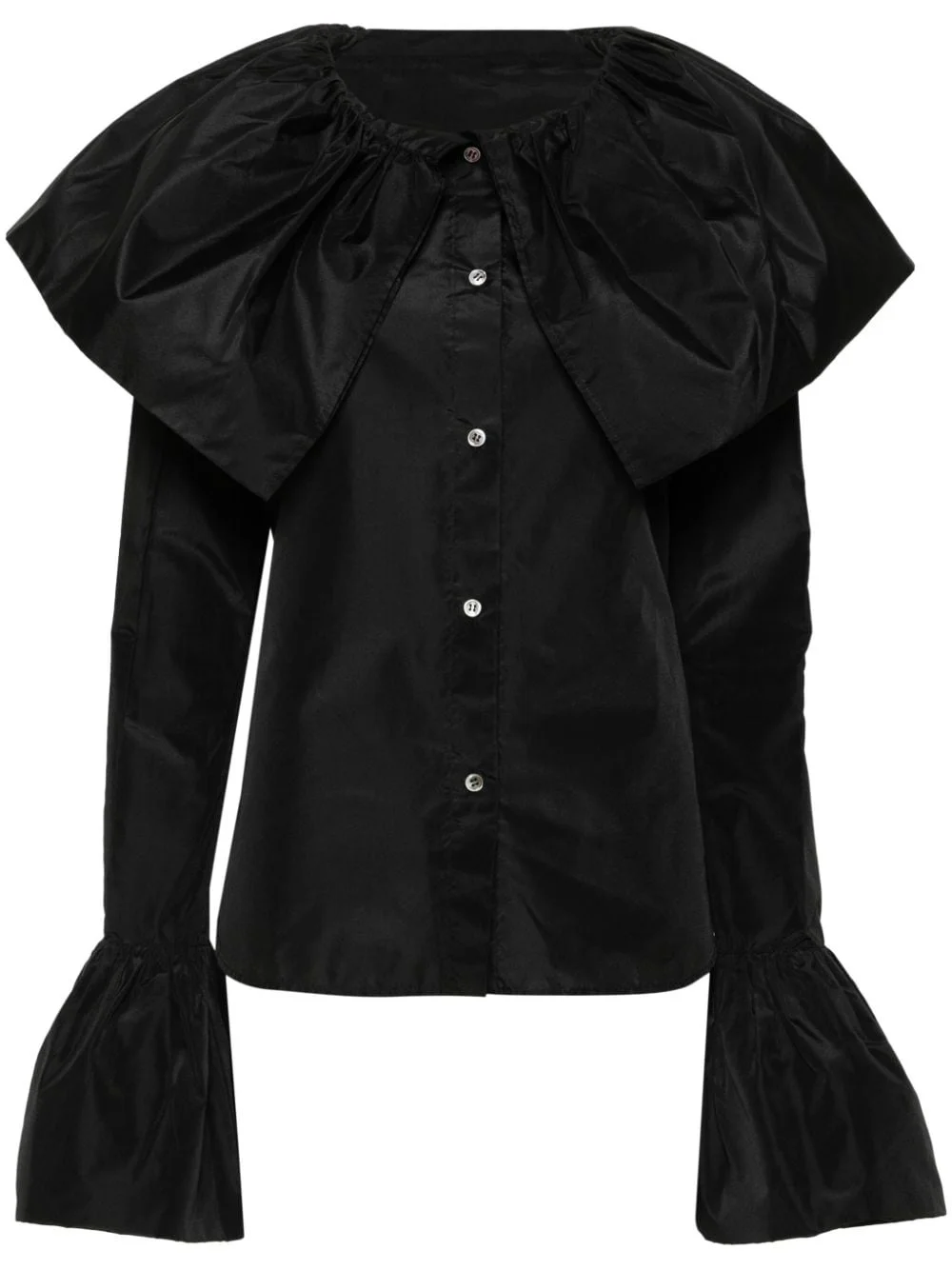 taffeta blouse Highlights - Black - Silk blend - Taffeta - Front button fastening - Oversize collar - Long sleeves with button-fastening flared cuffs - Curved hem Imported Composition Polyester 50%, Silk 50% SIZE & FIT Model measurements Height 5 ft 9 in(1.75 m) Bust/Chest 31.88 in(81 cm) Hips 34.64 in(88 cm) Waist 24.01 in(61 cm) FittingInformation Designed to be unstructured, offering a loose fit throughout Made from a lightweight non-stretch fabric