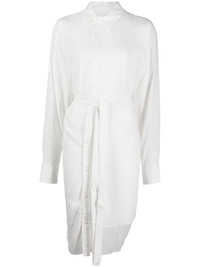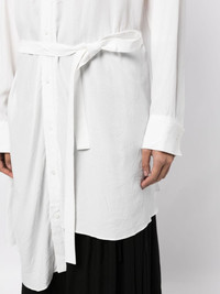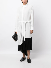 tied-waist asymmetric shirt Highlights - Optical white - Asymmetric design - Spread collar - Off-centre front button fastening - Tied waist - Long sleeves - Buttoned cuffs - Asymmetric hem Imported Composition Body: Rayon 100% SIZE & FIT Model measurements Height 5 ft 10 in(1.77 m) Bust/Chest 31.49 in(80 cm) Hips 35.43 in(90 cm) Waist 25.19 in(64 cm) FittingInformation Designed to be unstructured, offering a loose fit throughout The adjustable tie waist gives a more adaptable and personalised fit Made from a midweight non-stretch fabric This piece fits true to size – take your usual size Washing instructions Read Manufacturer Guidelines