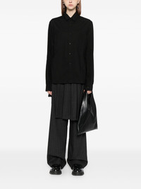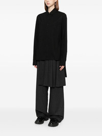 typewriter back slit shirt Highlights - Black - Front button fastening - Rear button fastening - Two chest welt pockets - Asymmetric hem Imported Composition Cotton 100% SIZE & FIT Model measurements Height 5 ft 10 in(1.77 m) Bust/Chest 29.33 in(74.5 cm) Hips 32.28 in(82 cm) Waist 24.01 in(61 cm) FittingInformation Designed to be unstructured, offering a loose fit throughout Made from a midweight non-stretch fabric, this piece offers minimal elasticity when worn Washing instructions Hand Wash