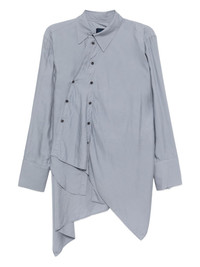 asymmetric draped shirt Highlights - Light blue - Off-centre front button fastening - Rear button fastening - Spread collar - Buttoned-cuff sleeves Imported Composition Rayon 100% SIZE & FIT Model measurements Height 5 ft 10 in(1.78 m) Bust/Chest 29.92 in(76 cm) Hips 34.64 in(88 cm) Waist 24.8 in(63 cm) FittingInformation Designed for a relaxed fit, this piece allows for comfort and movement when worn Made from a midweight non-stretch fabric Washing instructions Dry Clean Only