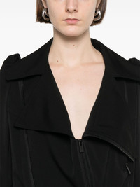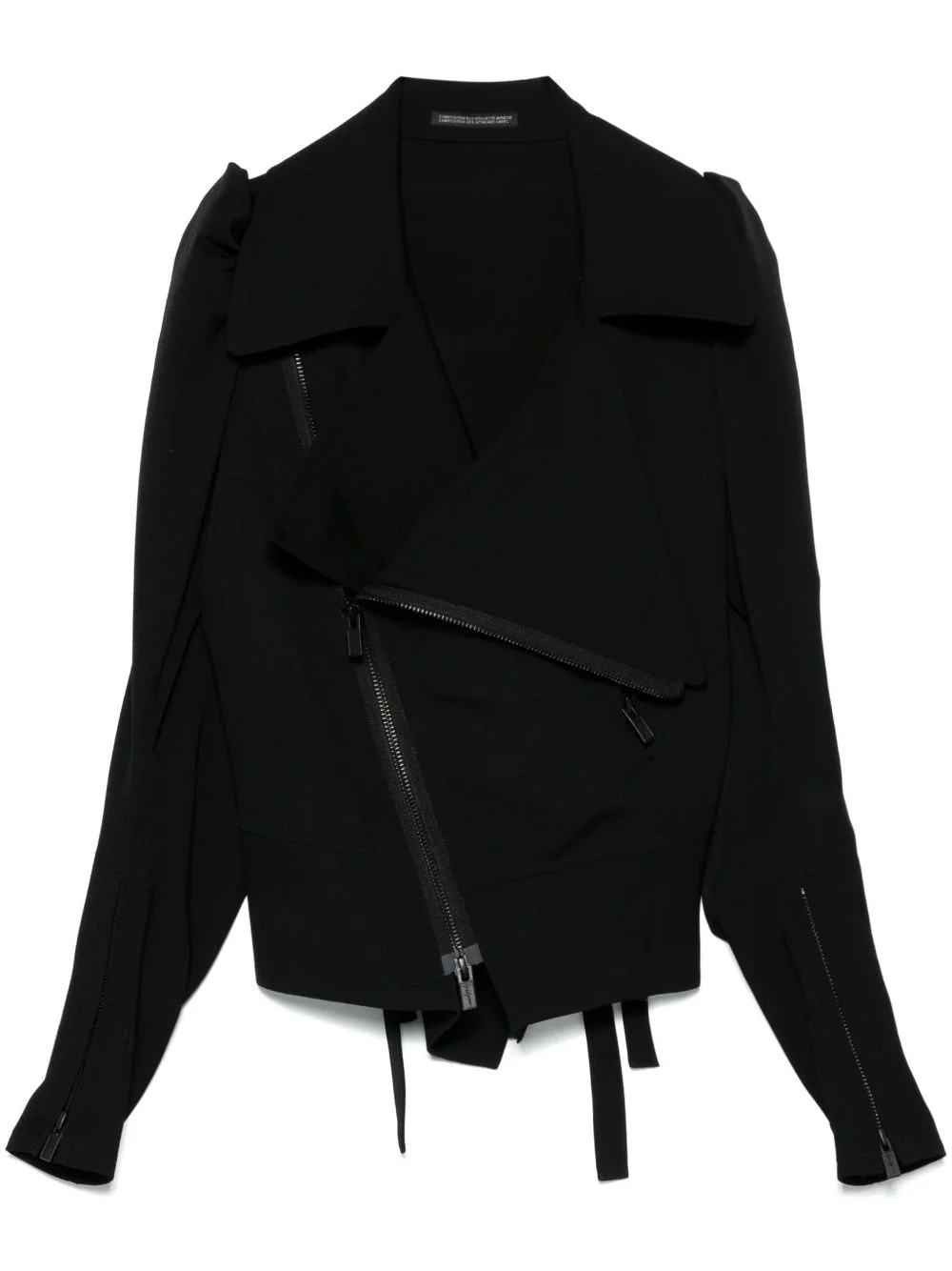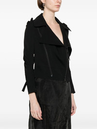 wool biker jacket Highlights - Black - Off-centre front zip fastening - Cuff zips - Belted waist tabs - Side zip-fastening pocket Imported Composition Wool 100% SIZE & FIT Model measurements Height 5 ft 10 in(1.77 m) Bust/Chest 31.1 in(79 cm) Hips 34.64 in(88 cm) Waist 24.01 in(61 cm) FittingInformation Designed for a slim fit that sits just away from the body offering a close yet comfortable fit The tie fastening gives an adaptable and personalised fit Made from a midweight non-stretch fabric