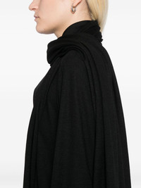 wool stole detail blouse Highlights - Black - Front button fastening - Layered design Imported Composition Wool 100% SIZE & FIT Model measurements Height 5 ft 9 in(1.76 m) Bust/Chest 31.1 in(79 cm) Hips 35.03 in(89 cm) Waist 24.4 in(62 cm) FittingInformation Designed to be unstructured, offering a loose fit throughout Made from a midweight non-stretch fabric, this piece offers minimal elasticity when worn