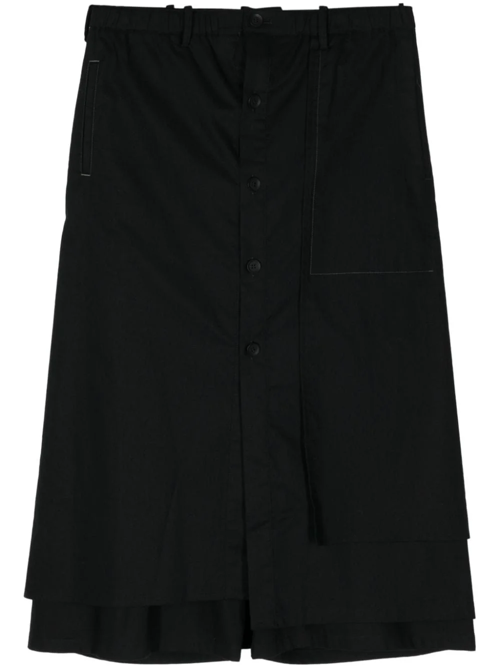 wrap cropped trousers Highlights - Black - Cotton - Wrap design - Contrast stitching - High-waisted - Elasticated waistband - Belt loops - Front button fastening - Two side slit pockets - Wide leg - Cropped Imported Composition Cotton 100%