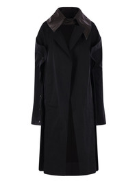 leather-collar coat Highlights - Black - Leather collar - Long sleeves - Side button detail Imported Composition Outer: Cotton 100%, Calf Leather 100% Lining: Cellulose 55%, Ramie 45% Washing instructions Read Manufacturer Guidelines
