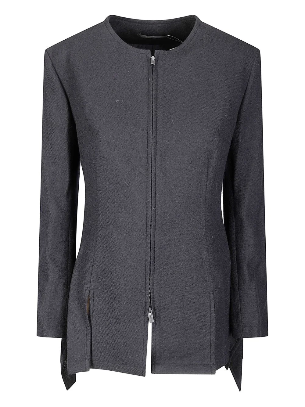 zip-up wool jacket Highlights - Black - Front zip fastening - Asymmetric hem - Round neck - Long sleeves - Wool Imported Composition Wool 100% Washing instructions Read Manufacturer Guidelines