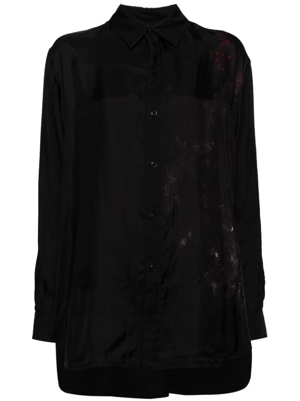 abstract-print long-sleeve shirt Highlights - Black/multicolour - Poplin texture - Abstract pattern print - Spread collar - Front button fastening - Long sleeves - Buttoned cuffs - Long length - Curved hem Imported Composition Cupro 100%