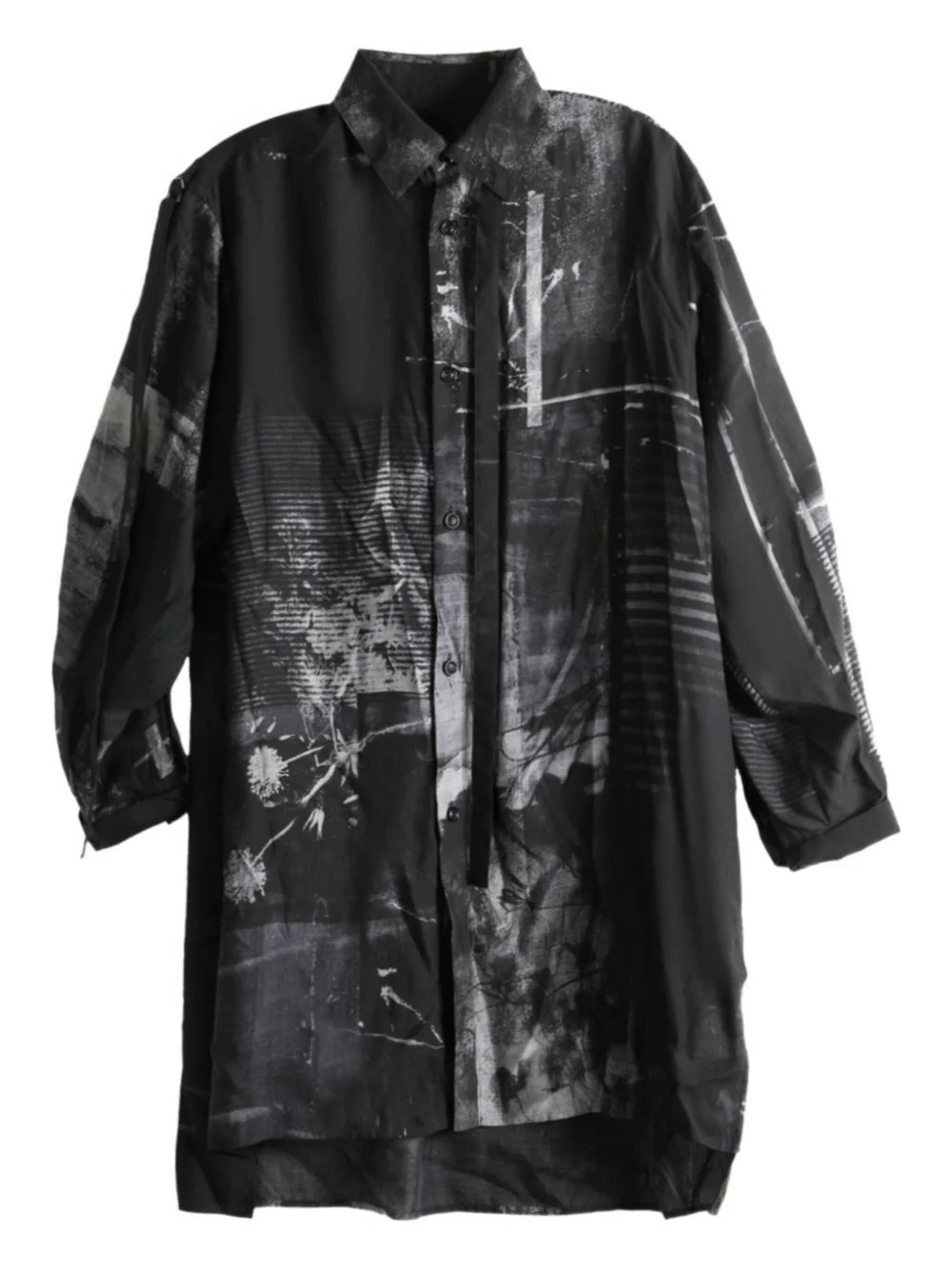 abstract-print shirt mini dress Highlights - Dark grey - Abstract print - Long sleeves - Button fastening - Asymmetric hem Imported Composition Cellulose 100% Washing instructions Read Manufacturer Guidelines