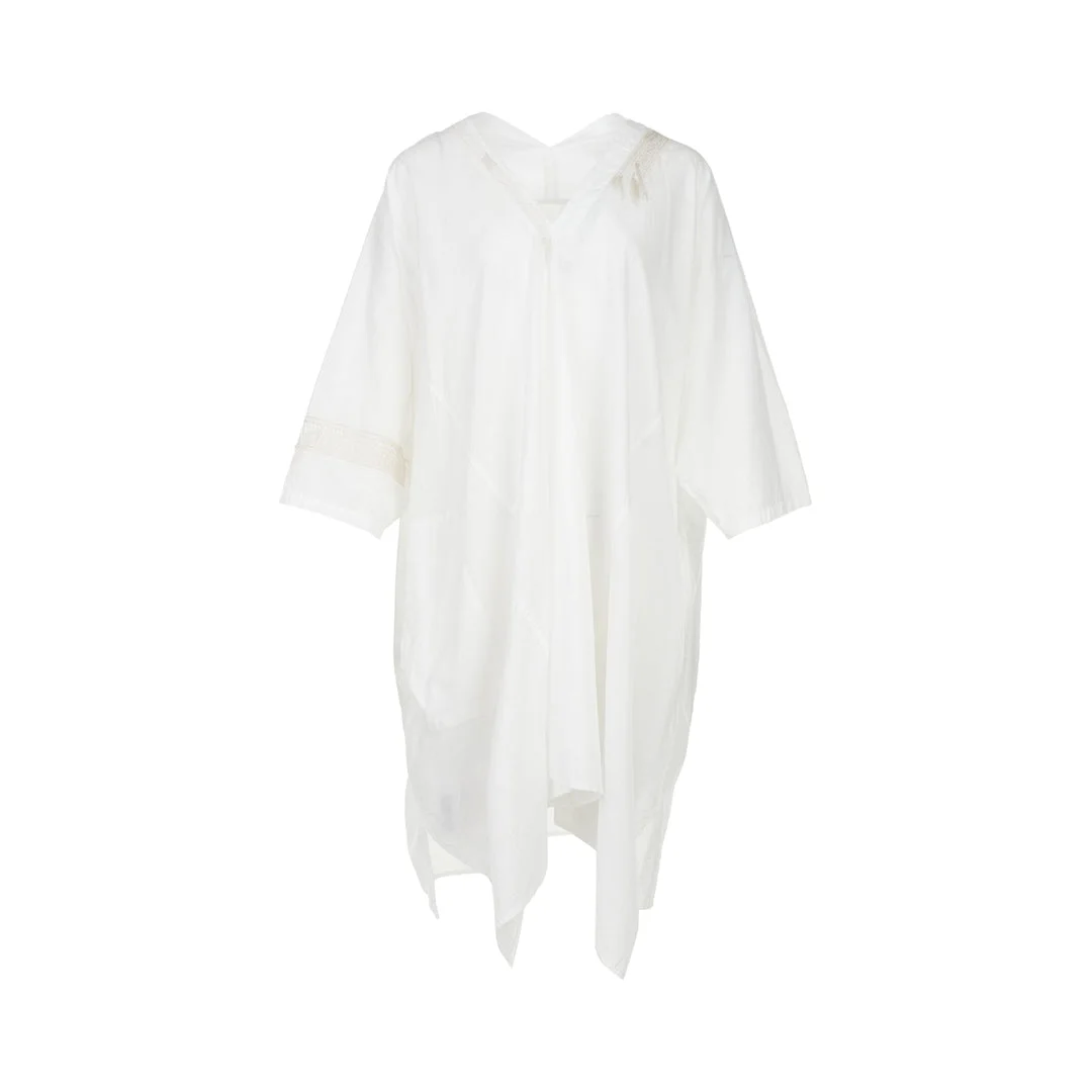 300050920WHT-02 / E6YQ-D10-030/00/WHITE - Asymmetrical sleeve arrangement - Deep V-neckline - Midi-length cut - Relaxed, oversized fit - Cotton blend construction - Minimalist design Y's Arranged Sleeve V Neck Dress delivers avant-garde minimalism with architectural silhouette and asymmetrical construction. Crafted from premium cotton blend fabric in crisp white, featuring uniquely positioned sleeves that create an unconventional drape. The deconstructed design and signature Y's aesthetic offer contemporary luxury with artistic functionality.