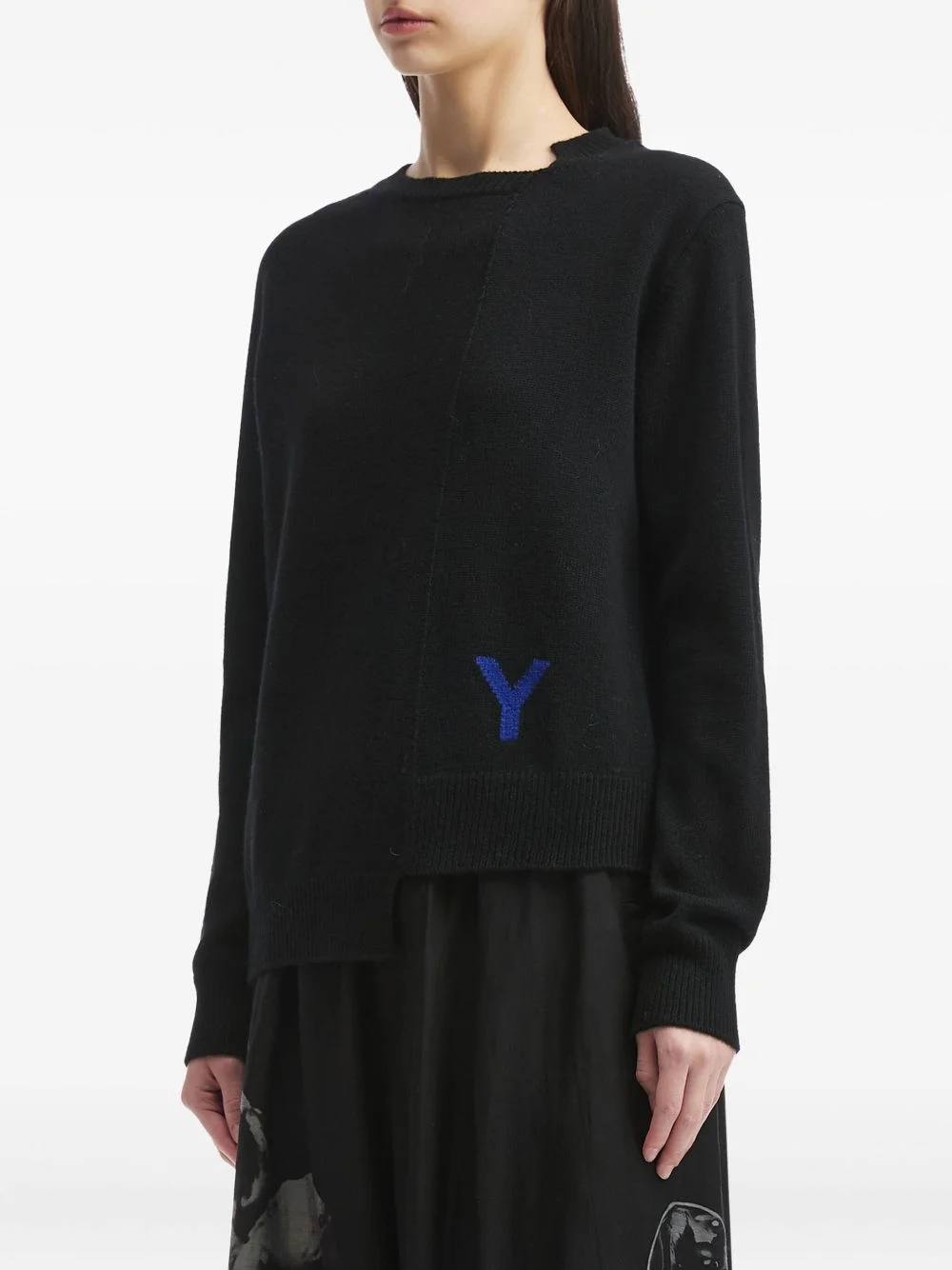 asymmetric-hem crew-neck sweater Highlights - Black - Wool - Asymmetric hem - Embroidered logo - Crew neck - Long sleeves Imported Composition Wool 100% Washing instructions Read Manufacturer Guidelines