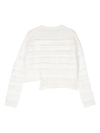 asymmetric hem knitted cardigan Highlights - Off-white - Cotton - Knitted construction - Frayed and open knit detailing - Rounded collar - Drop shoulder - Long sleeves - Rolled trim - Internal logo tag - Asymmetric hem Imported Composition Cotton 100%, Polyester 100% Washing instructions Dry Clean Only