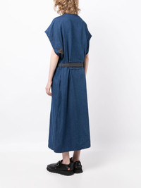 belted-waist twill denim dress Highlights - Indigo blue - Cotton - Denim - Twill weave - Asymmetric neck - Belted waist - Side button fastening - Short sleeves - Turn-up cuffs - Button-fastening chest pocket - Straight hem - Calf-length Imported Composition Cotton 100% SIZE & FIT Model measurements Height 5 ft 9 in(1.76 m) Bust/Chest 29.92 in(76 cm) Hips 35.82 in(91 cm) Waist 25.98 in(66 cm) FittingInformation Designed to be unstructured, offering a loose fit throughout The adjustable tie waist gives a more adaptable and personalised fit Sturdy and hard-wearing, this denim piece offers no stretch This piece fits true to size – take your usual size Washing instructions Hand Wash