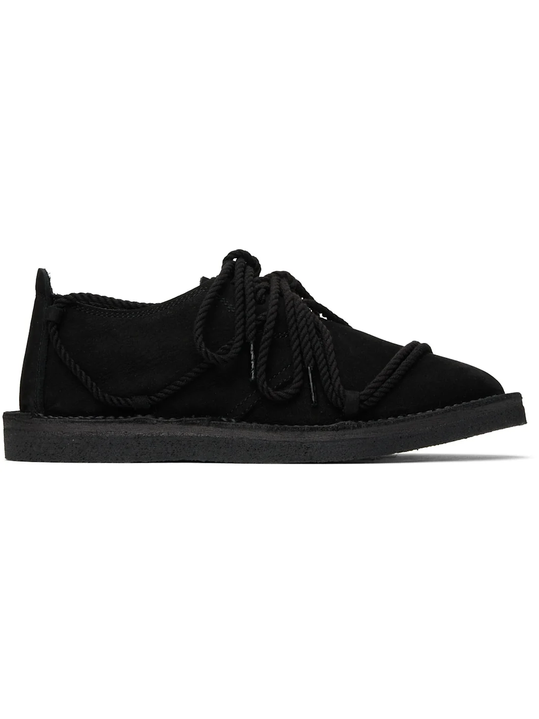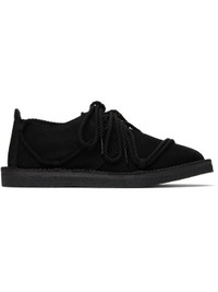 Nubuck loafers in black. · Crisscrossing rope-style lace-up closure · Suede lining · Topstitching at welt · Textured rubber sole Supplier color: Black Upper: leather. Sole: rubber. Made in Japan 251731F120001
