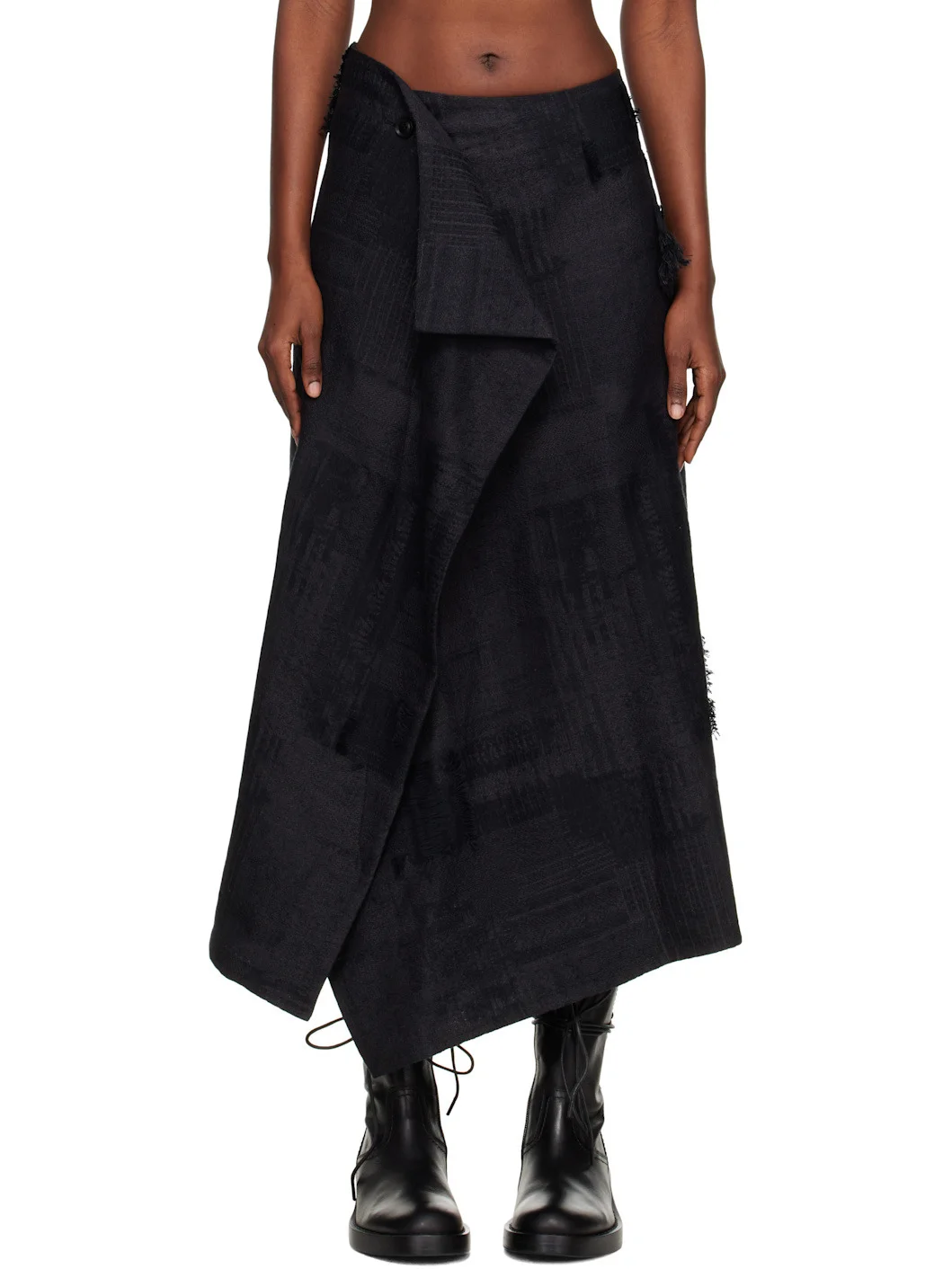 Plain-woven cotton maxi skirt. · Wrap construction · Jacquard graphics and fringed detailing throughout · Button fastening at waistband · Single-pocket styling · Unlined Supplier color: Grey 100% cotton. Made in Japan 252731F093000