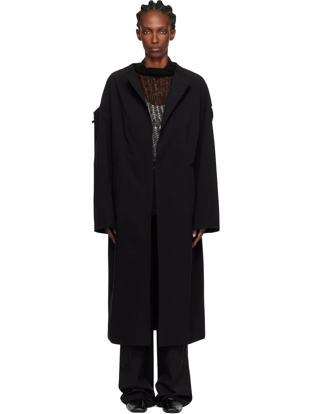 Plain-woven coat. · Round neck · Single hook-eye closure · Welt pockets at waist · Self-tie straps at sleeves · Unlined Supplier color: Black 100% polyester. Made in Japan 252731F059002