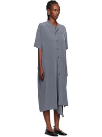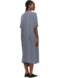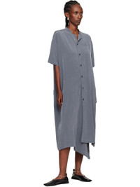 Triacetate-blend sateen midi dress. · Notched band collar · Button closure · Welt pocket at chest · Vented drop-tail hem · Dropped shoulders · Patch pockets at back Supplier color: Blue/Grey 57% triacetate, 47% polyester. Made in Japan 252731F054001