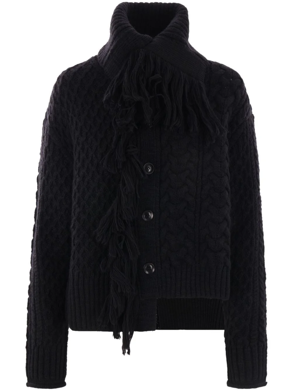 cable-knit cardigan Highlights - Black - Wool - Cable knit - Front button fastening - High neck - Long sleeves - Straight hem Imported Composition Wool 100%