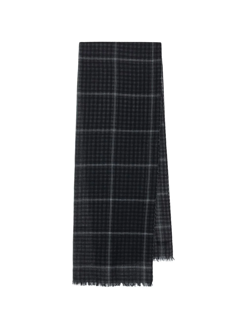 check fringed scarf Highlights - Black - Check pattern - Fringed edge - Rectangle shape Imported Composition Wool 87%, Silk 13%