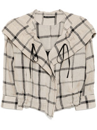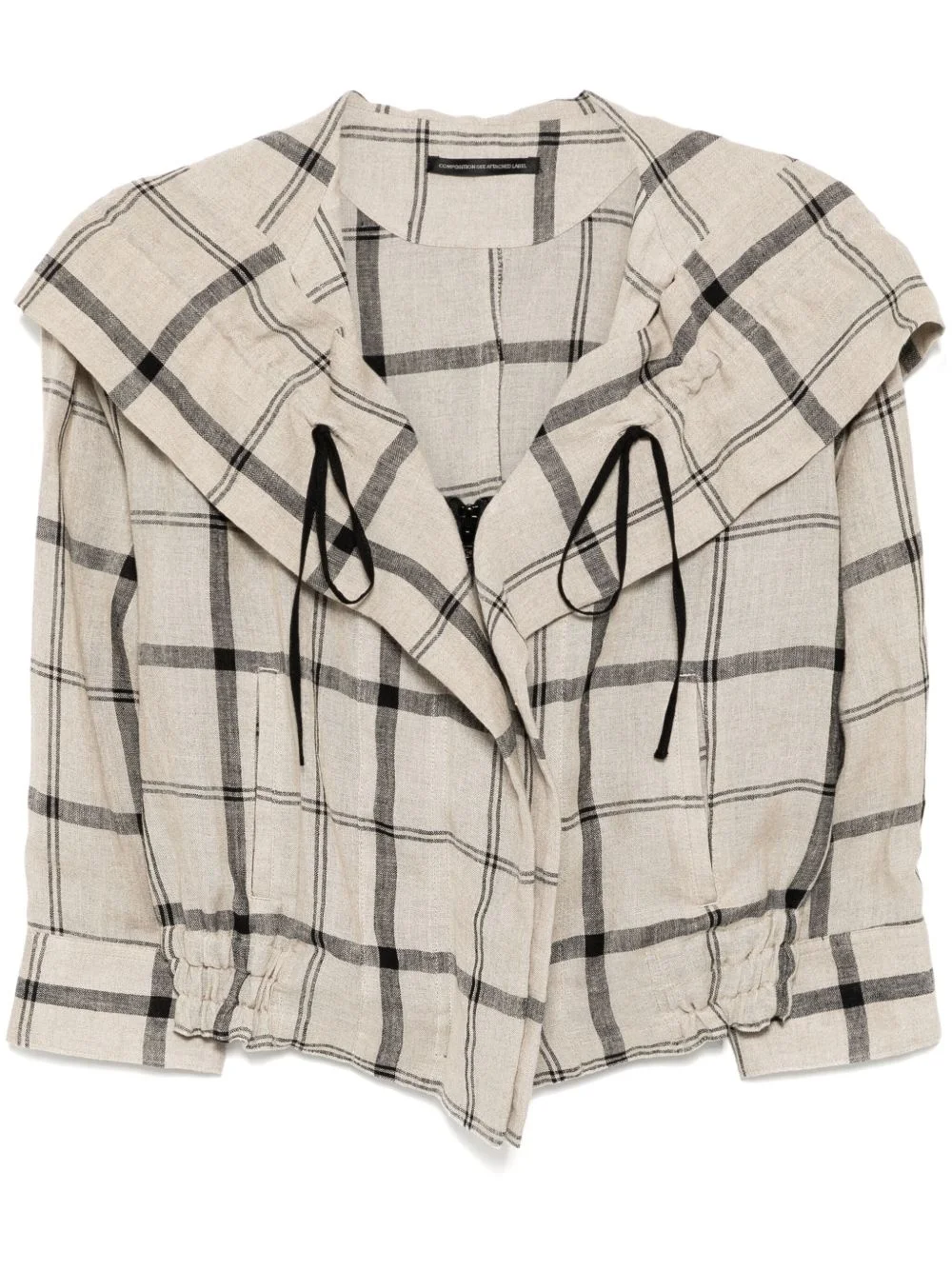 checked jacket Highlights - Beige - Front zip fastening - Drawstring hood - Two front welt pockets - Elasticated hem Imported Composition Nylon 4% Outer: Linen/Flax 96% Washing instructions Dry Clean Only