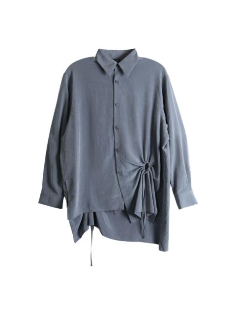circle gathered blouse Highlights - Black - Front button fastening - Classic collar - Long sleeves - High-low hem Imported Composition Triacetate 57%, Polyester 43%
