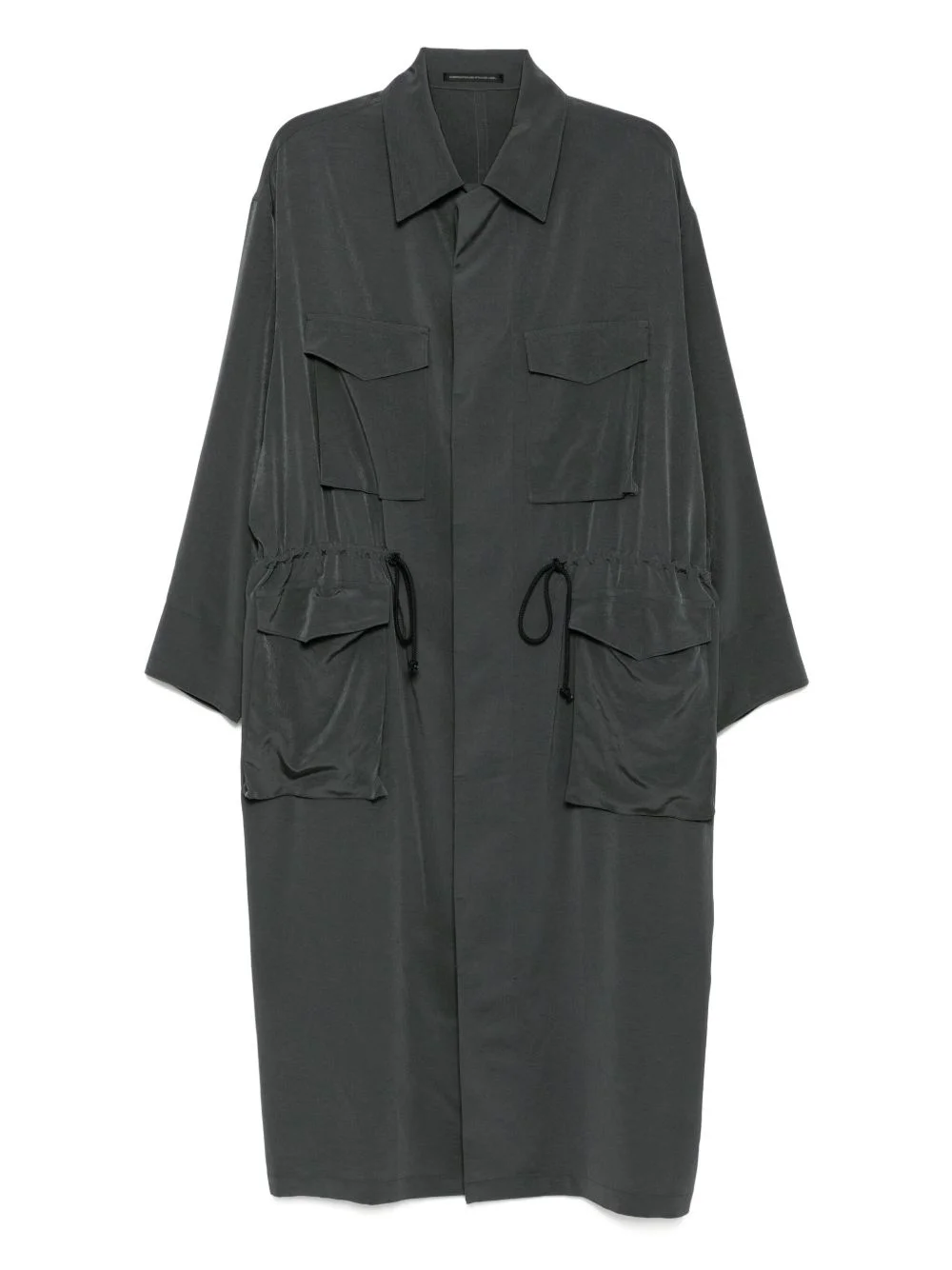 Crepe de Chine long dress Highlights - Grey - Concealed front button fastening - Classic collar - Long sleeves - Two front flap pockets Imported Composition Triacetate 57%, Polyester 43% Washing instructions Dry Clean Only