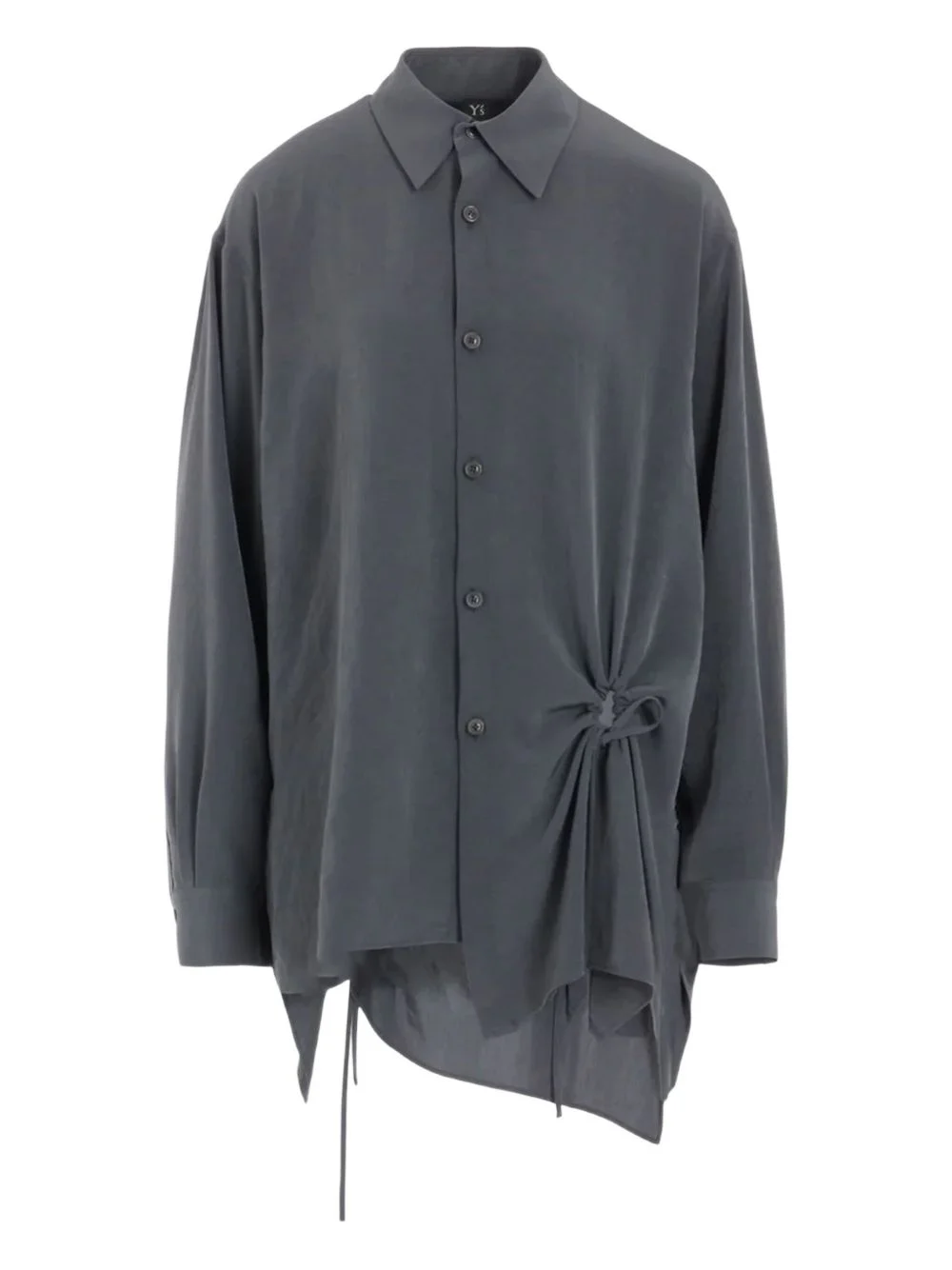 crepe de chine shirt Highlights - Grey - Button fastening - Asymmetrical hem - Drawstring detail Imported Composition Triacetate 57%, Polyester 43% Washing instructions Read Manufacturer Guidelines