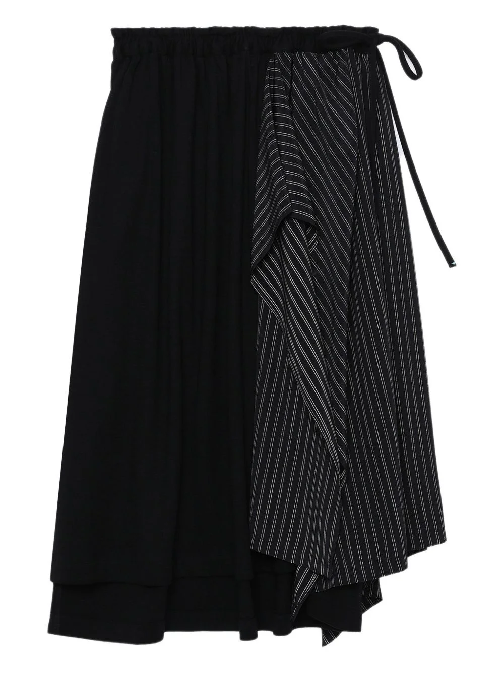 pinstripe panelled midi skirt Highlights - Black - Pinstripe panel - Layered design - Asymmetric hem - Drawstring waist - Elasticated waistband Imported Composition Wool 100%, Polyester 100% Washing instructions Read Manufacturer Guidelines