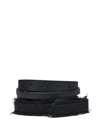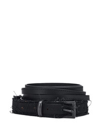 frayed-edge leather belt Highlights - Black - Calf-leather - Frayed canvas - Square buckle - Stitch detailing Imported Composition Calf Leather 100%, Fabric 100%