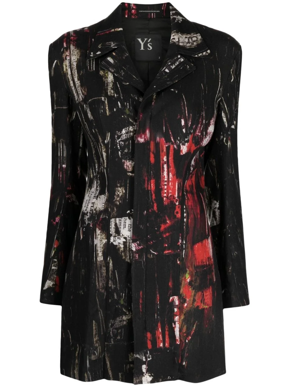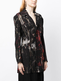 graphic-print zipped blazer Highlights - Black/multicolour - All-over graphic print - Wide peak lapels - Front zip fastening - Long sleeves - Straight hem Imported Composition Body: Rayon 100% Lining: Cupro 100% SIZE & FIT Model measurements Height 5 ft 10 in(1.78 m) Bust/Chest 29.13 in(74 cm) Hips 35.43 in(90 cm) Waist 23.62 in(60 cm) FittingInformation Designed for a slim fit that sits just away from the body offering a close yet comfortable fit Made from a midweight non-stretch fabric This piece fits true to size – take your usual size Washing instructions Dry Clean Only