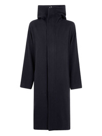 hooded wool coat Highlights - Black - Hooded neckline - Concealed front fastening - Dropped shoulders - Long sleeves - Welt pockets Imported Composition Wool 100% Washing instructions Read Manufacturer Guidelines